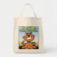 The printing came out very well, better than I had anticipated. The natural color fabric is sturdy with strong seams and comfortable handles. This tote fits easily over my shoulder. As it is filled, the bottom flattens out--very cool! I would buy this product again. This grocery tote holds a lot of groceries! The image quality was very good. The colors were a little darker than I had expected. The darkness may have been due to printing on a natural color fabric rather than on white. The cat design is attractively centered on the tote. The spirit of the design is very lively, just as it appears on the Zazzle website.