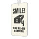 Smile Your On Camera funny video monitoring car air freshener. Make your own warning sign for inside your car or truck. Custom notice for vehicles with security systems, dash cams, video surveillance etc. Custom background colours. Hang it on your rear mirror.