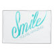 This design features a message of encouragement: Smile you're amazing!. The word Smile is written in blue cursive watercolor text. Easily add a name or other text to personalise this design.