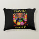 Smiley face throw pillow in black with custom name