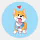 Smiley Happy Dog With Red Heart Classic Round Sticker