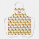An apron with a pattern of smiling, cartoon, apple pie characters and a customisable name.