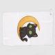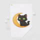 Smiling Black Cat with Glowing Green Eyes Sitting Golf Towel