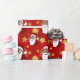 Christmas wrapping paper with an illustration of happy smiling African American Santa Claus, with editable text template for your name or message, Christmas holidays design with a seamless red background with stars