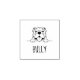 Simple cartoon illustration of a happy bulldog peeking from behind a divider. Only its head and front paws are visible. Customisable name.