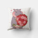 Smiling cartoon hippo holding a huge bouquet cushion