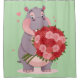 Smiling cartoon hippo holding a huge bouquet shower curtain