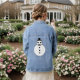 This awesome denim jacket features a smiling white Christmas snowman with black buttons and a top hat. He looks like one cool gent and would love to help you spread the joy of Christmas this year.