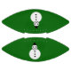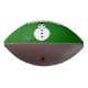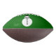 This awesome football features a smiling white Christmas snowman with black buttons and a top hat. He looks like one cool gent and would love to help you spread the joy of Christmas this year. The background is a festive shade of green.
