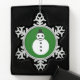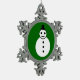 This awesome ornament features a smiling white Christmas snowman with black buttons and a top hat. He looks like one cool gent and would love to help you spread the joy of Christmas this year. The background is a festive shade of green.