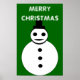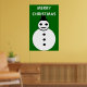 This fun festive poster features a smiling white Christmas snowman with black buttons and a top hat. He looks like one cool gent and would love to help you spread the joy of Christmas this year. The background is a festive shade of green and there is a white border and white snowy text that reads "Merry Christmas". The poster is available in several sizes, making it an ideal decoration for a family living room or a large hall.