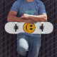 This design features an emoji-style image of a smiling face. These sorts of faces are often seen in smartphone apps.