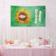 This banner or backdrop is done in shades of green with the smiling face ofa girl with brown hair in the middle of a big yellow fancy sunflower. Customise your text with the template.