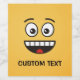 A classic emoticon with an open mouth showing teeth and open eyes. Custom text.
