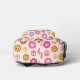 This is custom name personalised backpack for girls featuring colourful smiling retro flowers pattern with peace signs in orange, purple, pink, yellow and red. It's perfect gift for school girls