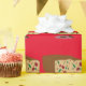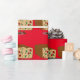 Smiling fruitcake gift wrapping paper with a red (colour changeable) background