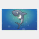 Smiling Funny Shark on Blue Background Rectangular Sticker
