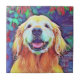 Smiling Golden Retriever Dog in Vibrant Colours Tile