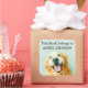 Let the world know your book belongs to YOU with these bookplate stickers. Design features a watercolor portrait of a smiling golden retriever dog, on a blue background. Customise with your own name!