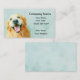 These business cards feature a watercolor portrait of a smiling golden retriever dog, on a blue background. Perfect for any pet-related business.