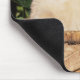 This fun canine mouse pad features a happy yellow Golden Retriever puppy sitting inside a old wood barrel with purple flowers in the background.