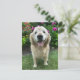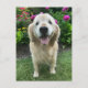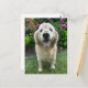 Smiling Golden Retriever with Flowers Thank You Postcard