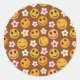 This is cute orange and yellow smiling happy faces with retro flowers on dark brown background.