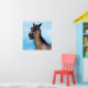 3D digital render of a cute smiling grulla horse with blue eyes on blue sky background. Perfect gift for everyone who loves fun and laughs