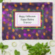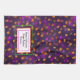 Smiling orange Jack o Lantern pumpkins on a dark purple bokeh pattern decorates this Halloween kitchen towel. Ample room to change, add to, or remove text and make it yours using the simple Template provided. Gift early to use the entire month of October. This large 16"x24" towel is 80% durable woven polyester/ 20% polyamide blend microfiber. Great for drying and machine washable. Made to last a lifetime. See "About This Product" at side for more information.