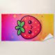 Smiling Kawaii Strawberry on Pastel Gradient Backg Beach Towel