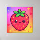 Smiling Kawaii Strawberry on Pastel Gradient Backg Canvas Print