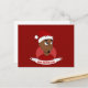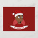 Postcard with an illustration of happy smiling African American man with Santa Claus' hat; with editable text template; Christmas holidays design with a red background