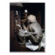 Beautiful realistic oil painting of a monkey with brown eyes, grey fur and expressive eyebrows holding a candle. Wonderful oil on canvas by Prague-born Austrian painter, Gabriel von Max (1840-1915). Great gift for the monkey lover in your life.