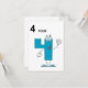 This design should make you smile because it is off a smiling number 4. The number 4 is done in a cartoon style with arms, legs and eyes. The number 4 is in a light blue colour and the words 4 four are written above. This smiling number 4 design looks great on these invitations