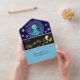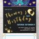 All in one gold foil "13th" birthday invitation featuring a Happy Octopus DJ wearing large headphones and playing music on turntables. Music Jungle texts and notes floating around. The perfect ..st birthday party invitation with fun music loving crowd with octopus animation shinning sparks, glam of gold foil.