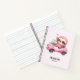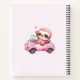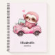 Spiral notebook with a whimsical illustration. A pink sloth driving around in a pink convertible. Adorable.