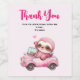 Smiling Pink Sloth Driving a Convertible Thank You Wine Label