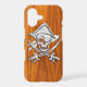 A silver chrome like pirate crossbones design on a teak wood veneer style background decor. A racy modern nautical skin gift.
