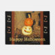 This Halloween doormat shows two smiling pumpkins that are stacked on top of each other and nearly ready to fall over. With the words, "Happy Halloween," and "Trick or Treat," this doormat is a perfect home decoration for Halloween.
