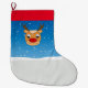 Smiling reindeer on blue large christmas stocking