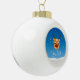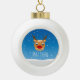 Smiling reindeer snowfall personalised blue ceramic ball christmas ornament