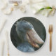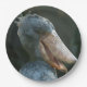 In the close-up, a shoebill smiles with its beak open, revealing a glimpse of its tongue. The majestic bird exudes charm and grandeur, captivating with its imposing yet friendly presence.