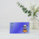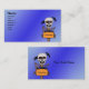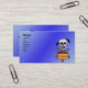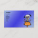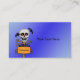 This custom business card has a smiling skull with tree branch limbs and body holding an orange sign on a vibrant dark fading to lighter blue background. customise your information plus your company name in the orange sign with the templates.