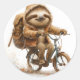 Smiling Sloth Cyclist Classic Round Sticker
