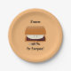 Paper plates with a smiling s'more cartoon character and the words "S'mores for Everyone!". The words are customisable.
