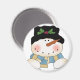 A snowman with a cute smile, carrot nose, coal eyes, blue and yellow stripe scarf, and black felt hat on Smiling Snowman T-shirts, hoodies, mugs, magnets, cards, keychains, tote bags, and much more.