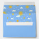 Send out your invitations and cards in style with this cute custom envelope that features a hand drawn repeating pattern with smiling suns and a blue cloudy sky on the inside as well as a custom printed return address on the top flap. The return address is customisable. To edit the text, click "personalise this template". There is a cloud and sun adorning the back above the return address printed in a yellow font.