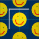 A green-eyed yellow suns smiling on a medium blue background. You may change the background colour. Feel free to contact me for assistance in resizing the graphic.