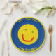 A green-eyed yellow sun smiling on a blue background. There are two places to add your own text.