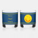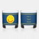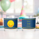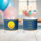 A green-eyed yellow sun smiling on a blue background. Customise by adding your own text on the reverse side. You may change the colour of both the text and the background.